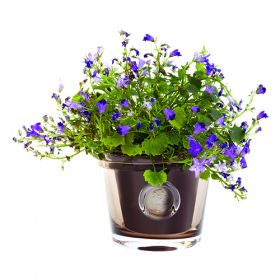 A license with the RHS has allowed Dartington's very own Hilary Green to create a great range of items influenced by the Flower Bottle collection. This Topaz Flower Pot has the RHS Tree emblem stamp